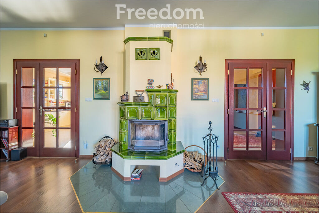 dziennego usytuowano kominek z obudową wykonaną z przepięknych